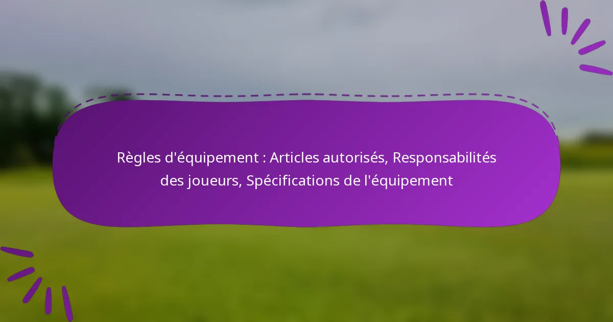 Comprendre les règles concernant l’équipement est essentiel pour les athlètes afin d’assurer la sécurité et le fair-play dans leurs sports respectifs. Cela inclut de se familiariser avec les articles autorisés, de maintenir leur équipement et de respecter les spécifications d’équipement spécifiques établies par les organismes de réglementation. En suivant ces directives, les joueurs peuvent contribuer à un environnement sûr et compétitif tout en améliorant leur performance.