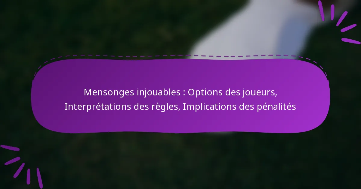 - Actions des joueurs : Les joueurs peuvent mal interpréter les règles concernant leurs responsabilités, comme ce qui constitue un jeu légal ou une violation.