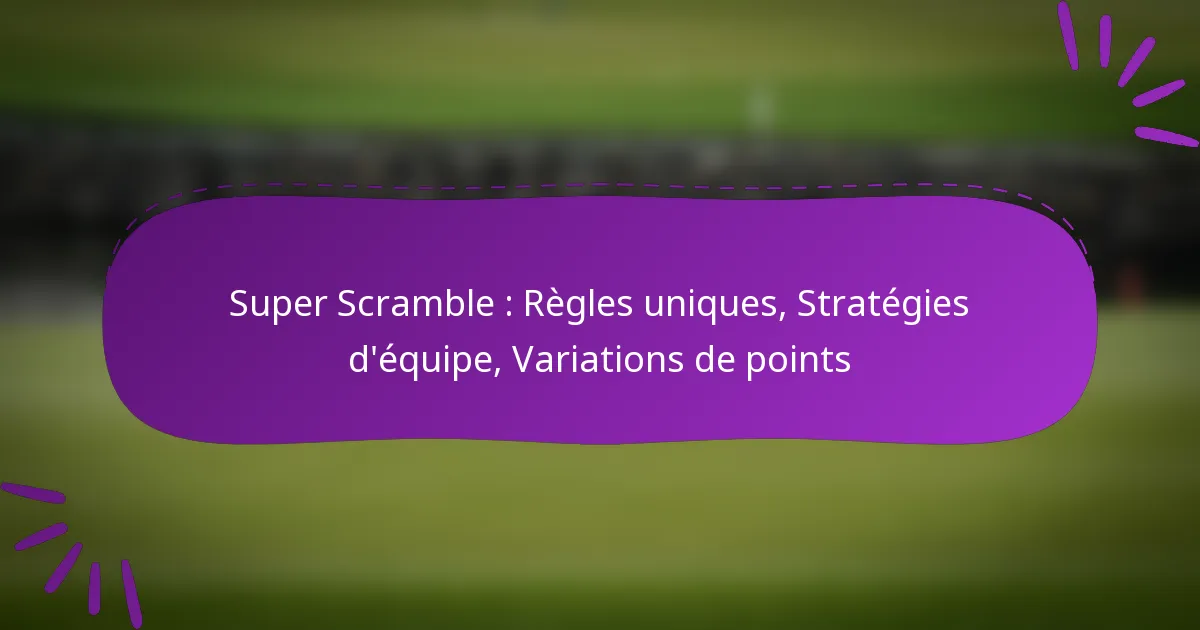 Super Scramble introduit des règles distinctives qui améliorent le travail d’équipe et le jeu stratégique, le distinguant des jeux de scramble traditionnels. Les joueurs doivent s’adapter à des mécaniques uniques et à des variations de points diverses, rendant essentiel de comprendre ces éléments pour une participation et une performance efficaces. En définissant clairement les rôles et en établissant une communication, les équipes peuvent développer des stratégies sur mesure qui maximisent leur succès dans la compétition.